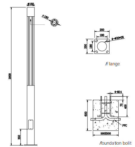Lamp Pole:Stainless steel /Aluminum alloy/Galvanzied