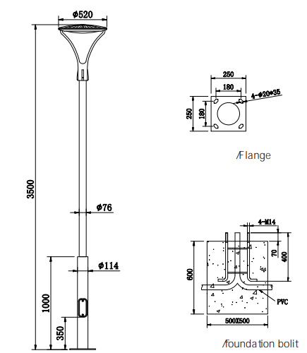 Lamp Pole:Stainless steel /Aluminum alloy/Galvanzied