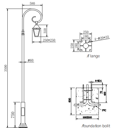 Lamp Pole:Stainless steel /Aluminum alloy/Galvanzied